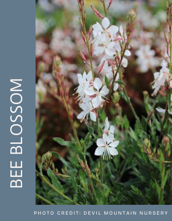 While Bee Blossom (Gaura) is a perennial and isn’t a grass per se, pruning it is almost the same: pull together like a pony tail but leave about 1’ of the plant (cut back to ⅓) in February/March to prune, tidy up, or prevent it from crowding out nearby perennials. This will encourage more flowering through summer.